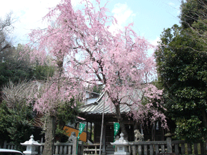 駅から左にしばらく行くと寺山神社があります。 ここにもきれいなしだれ桜があります。 |