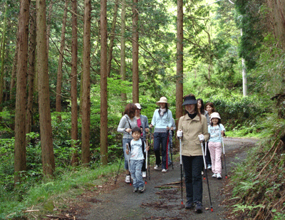 すると、先生がふと後ろの山を指差されて、「あの山の向こうには富士山があり、登ったら見えるはずだから、できたらオプションにトレッキングコースも作りたいですね」とおっしゃいました。それを聞いた私は、ぜひ富士山が見てみたくなりました。さらに先生は、「この林道は道場の反対側にも森や山に囲まれた平坦な道が続いていて、森林浴やウォーキングにも最適だし、久しぶりに道の様子も調べたいので、行って見ましょうか、それから、まだ朝6時前だし、ついでにその先の富士山の展望台にも行きましょうか」と言ってくださいました。先生方も連休の合宿が一段落したので、少しリラックスモードなのかなと思ったのですが、「その代わりぜひ感想文を書いてくださいね」と言われました(笑)それにしても「早起きは○○の徳」ですね。朝からすがすがしい気持ちになれますし、1日も長く充実します。