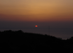 日の出はいつも元旦くらいにしか見たことがなかったのですが、こうして毎朝感動的な日の出が繰り返されていることを思うと、普段当たり前だと思っていた、この地球の素晴らしさや、自分が生きていることの実感や感謝の気持ちが沸いてきました。道場の裏山からの景色も最高でしたが、この高原の景色も素晴らしく、しばらくじっと海を眺めていました。